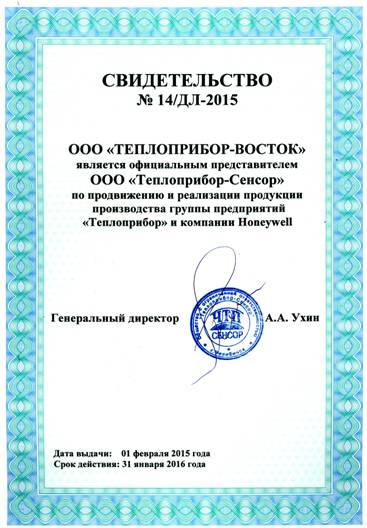 статус дилера ООО «ТЕПЛОПРИБОР-СЕСОР».