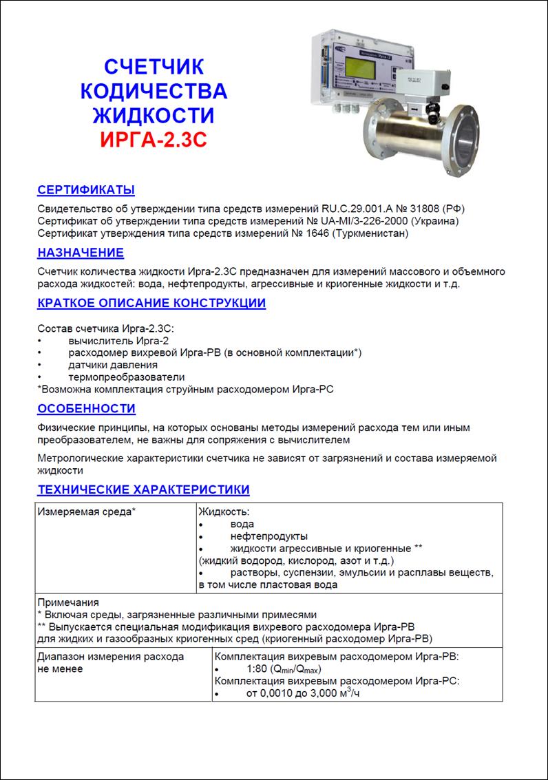 ÒÅÏËÎÑ×ÅÒ×ÈÊ ÄËß ÍÀÑÛÙÅÍÍÎÃÎ È ÏÅÐÅÃÐÅÒÎÃÎ ÏÀÐÀ ÈÐÃÀ-2.3Ñ |